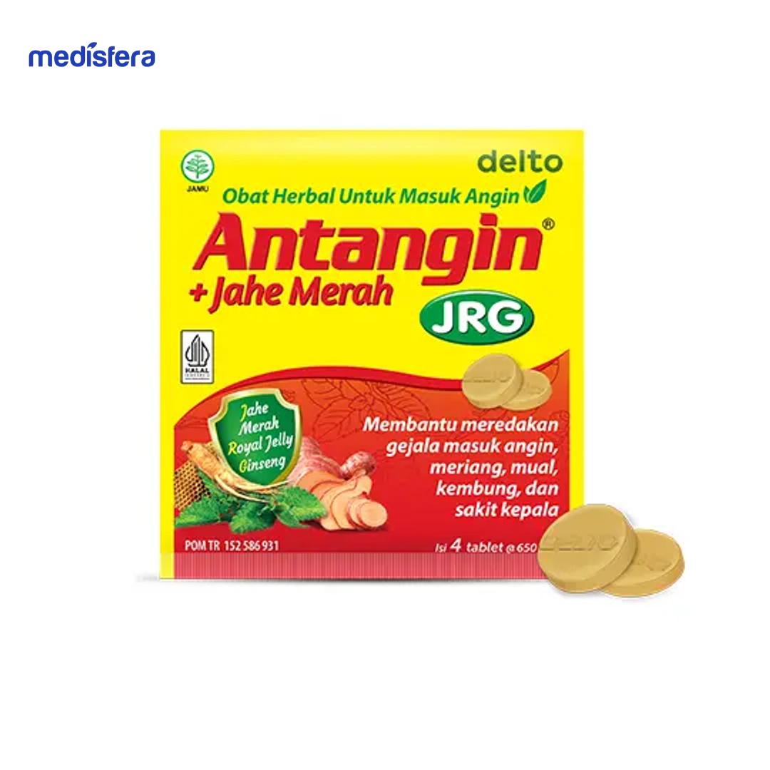 ANTANGIN JRG TABLET STRIP is an herbal tablet that can be used to treat wind entry, such as nausea, nausea, bloating stomach, cold sweat, fatigue and road sickness.