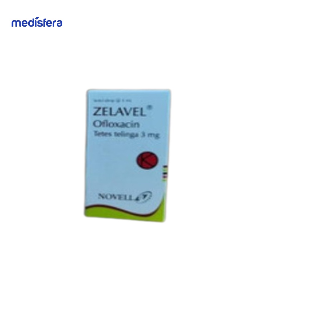 ZELAVEL 3MG/ML OTIC SOL 5ML has content ingredients aktif Ofloxacin. Ofloxacin is medication antibiotik golongan quinolone that works by menghambat formation DNA bacteria with menggangu kerja enzim DNA gryrase and topoisomerasi IV, so growth bacteria will terhenti and mati.